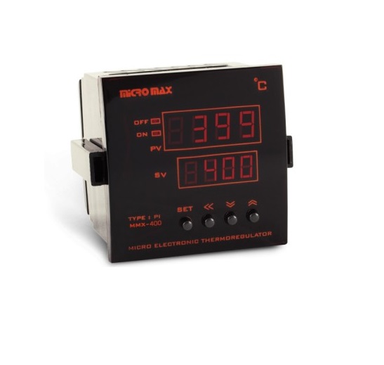 ترموستات میکروپروسسوری مدل MMX-400PI میکرومکس دارای نمایشگر دیجیتال جهت نمایش دمای محیط و درجه حرارت تنظیمی می باشد. محدوده تنظیم درجه حرارت این محصول 50- تا 400 درجه سانتیگراد با دقت 1 درجه سانتی گراد است. از دیگر ویژگی های این محصول، تصحیح خطای منحنی ترموکوپل در تمامی نقاط با قابلیت تنظیم OFFSET به میزان 20 درجه سانتیگراد، توانایی ارسال فرمان برای بار خروجی تا 15 آمپر توان بکار گیری در دو حالت سرد کننده یا گرم کننده، مجهز به سیستم قفل برای کلید ها، امکان استفاده از PI برای حالت HEAT و عملکرد ON/OFF برای هر دو حالت HEAT  و COOL و … می باشد.